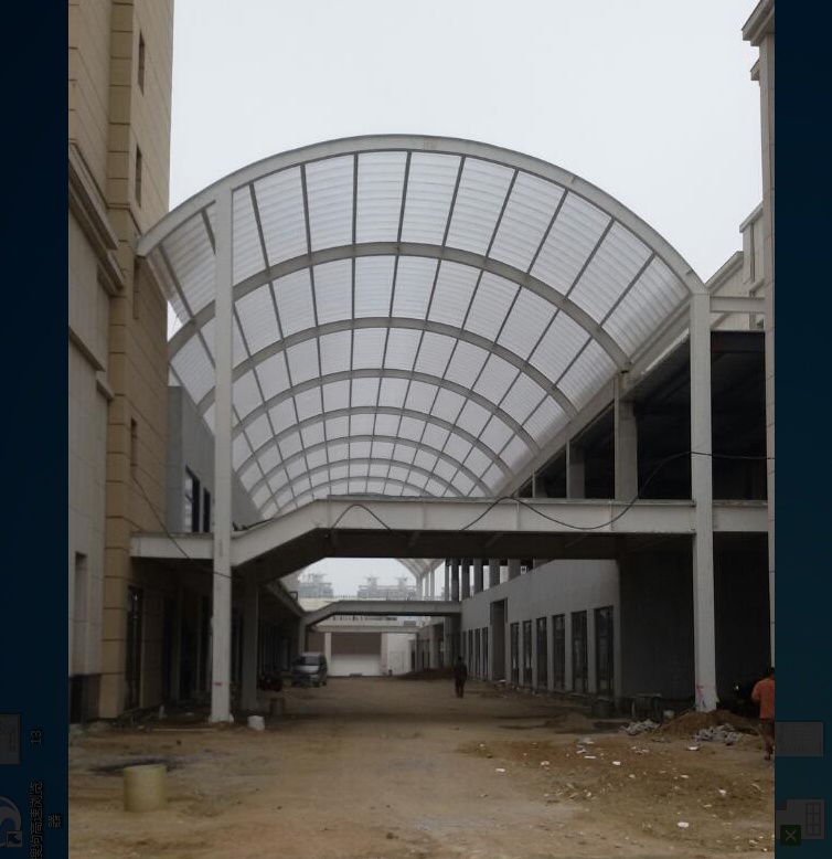 6、可彎曲性:可依設計圖在工地現場(chǎng)采用冷彎方式,安裝成拱形,半圓形頂和窗,最小彎曲半徑為采用板厚度的175倍,亦可熱彎。