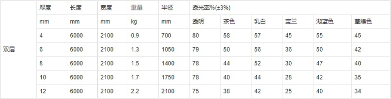 陽(yáng)光板常見(jiàn)規格